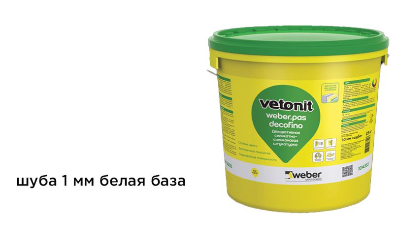 Декоративная силикатно-силиконовая штукатурка weber.pas decofino шуба 1 мм, белая база, 25 кг