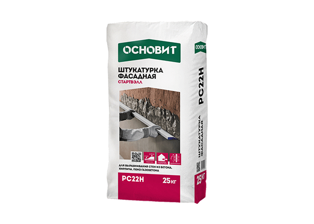 Цементная штукатурка ОСНОВИТ СТАРТВЭЛЛ РС22 Н предназначена для выравнивания стен из бетона, кирпича и ячеистого бетона.