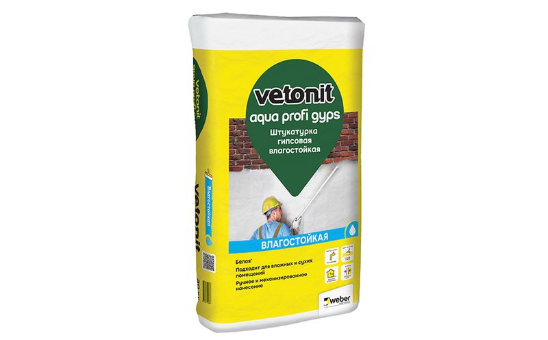 vetonit aqua profi gyps - гипсовая влагостойкая штукатурка для базового выравнивания стен и потолков. Можно использовать для сухих помещений, а также помещений с повышенной влажностью. Смесь трещиностойкая и паропроницаемая.
